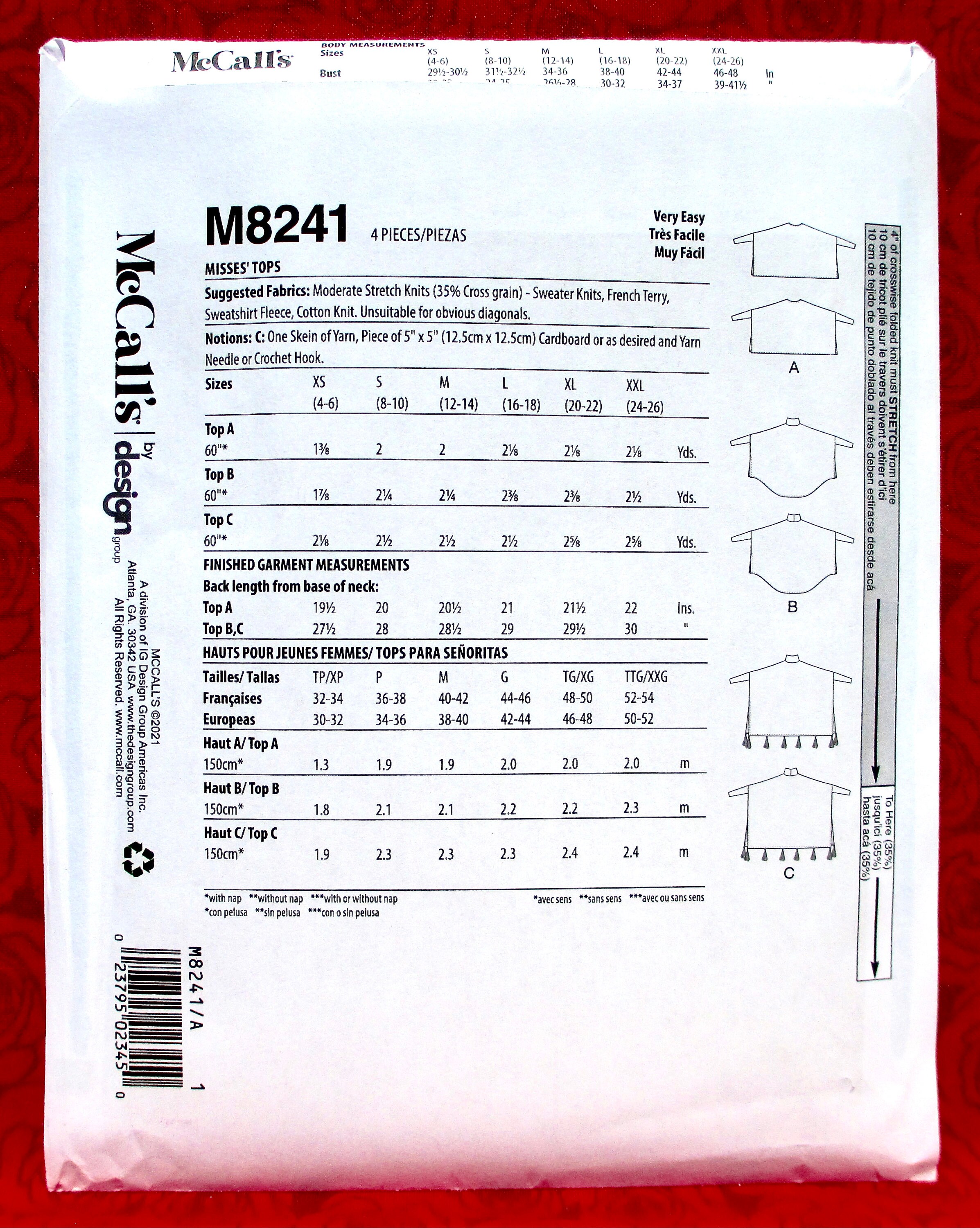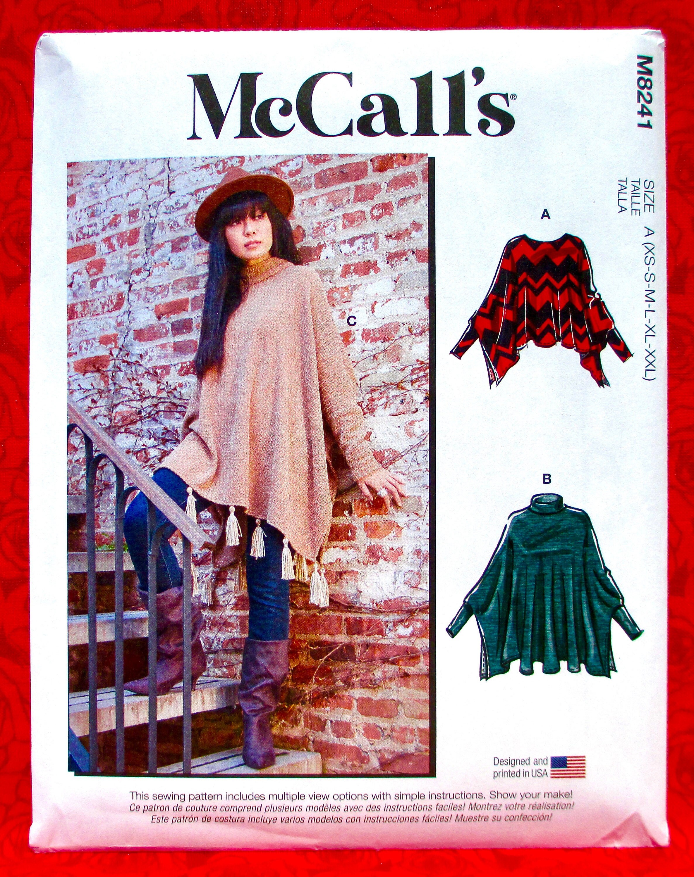 Mccall S Easy Sewing Pattern M8241 Knit Poncho Top Loose Etsy