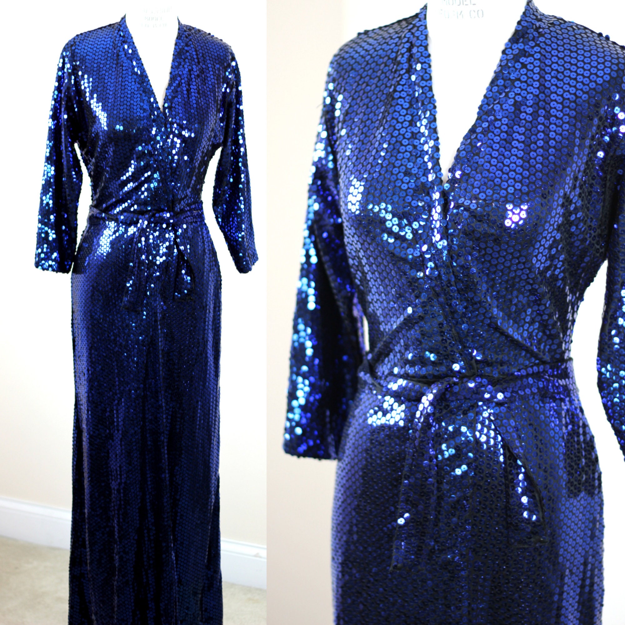 Size 10 Lillie Rubin Royal Blue Sequin Gown Long Beaded Etsy Australia